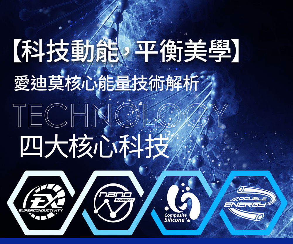 愛迪莫的能量不會因為水洗或是時間衰退,並引進光波技術讓矽膠具有更佳的親膚性。
