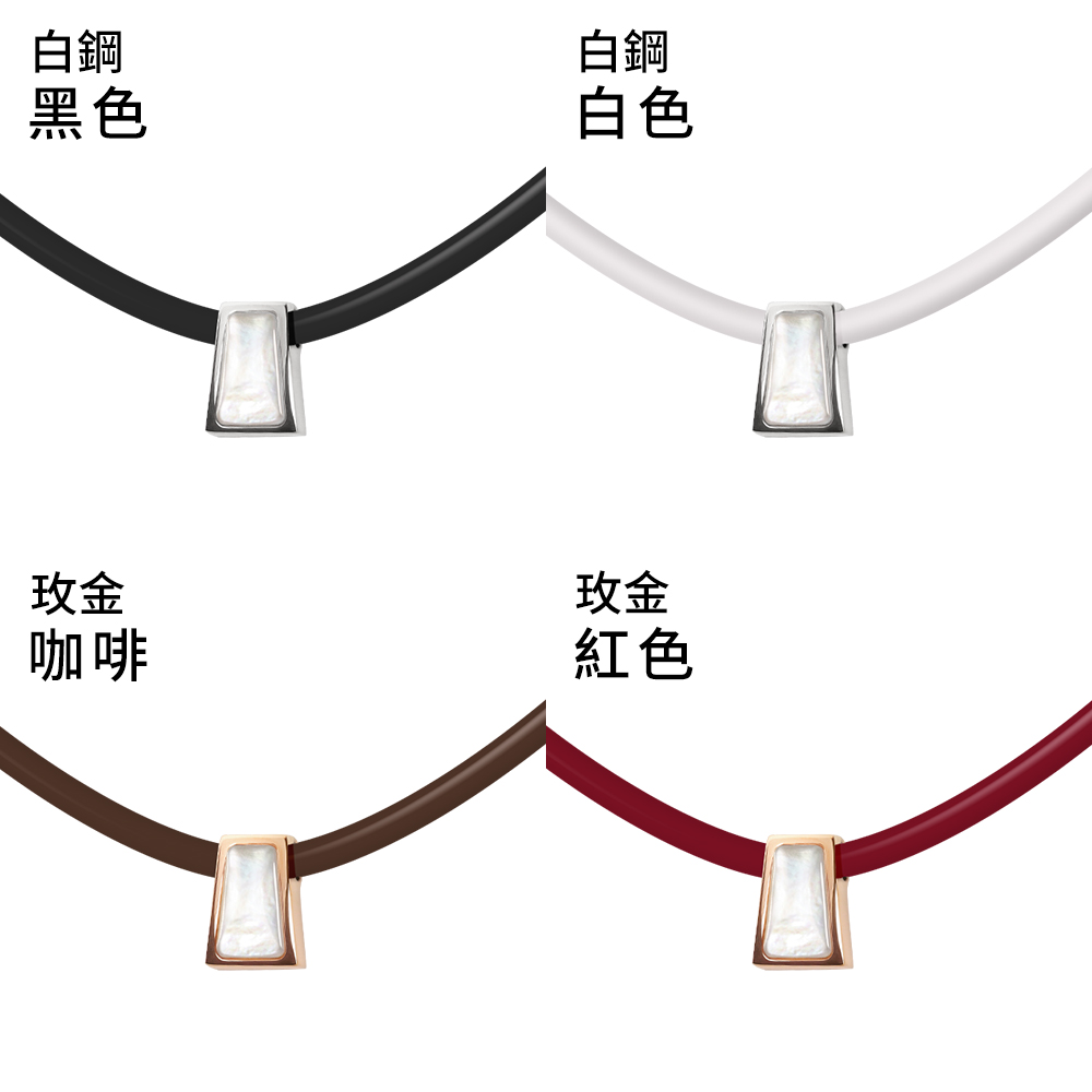在外觀設計上,Star 恆星鈦鍺項鍊提供多樣配色選擇,滿足不同風格需求。白鋼款提供黑色與白色,簡約清爽,百搭實用;玫金款則推出咖啡與紅色,展現沉穩與活力的雙重氣質。母貝本身的自然光澤與鍊身設計相得益彰,為整體造型增添細膩亮點。
