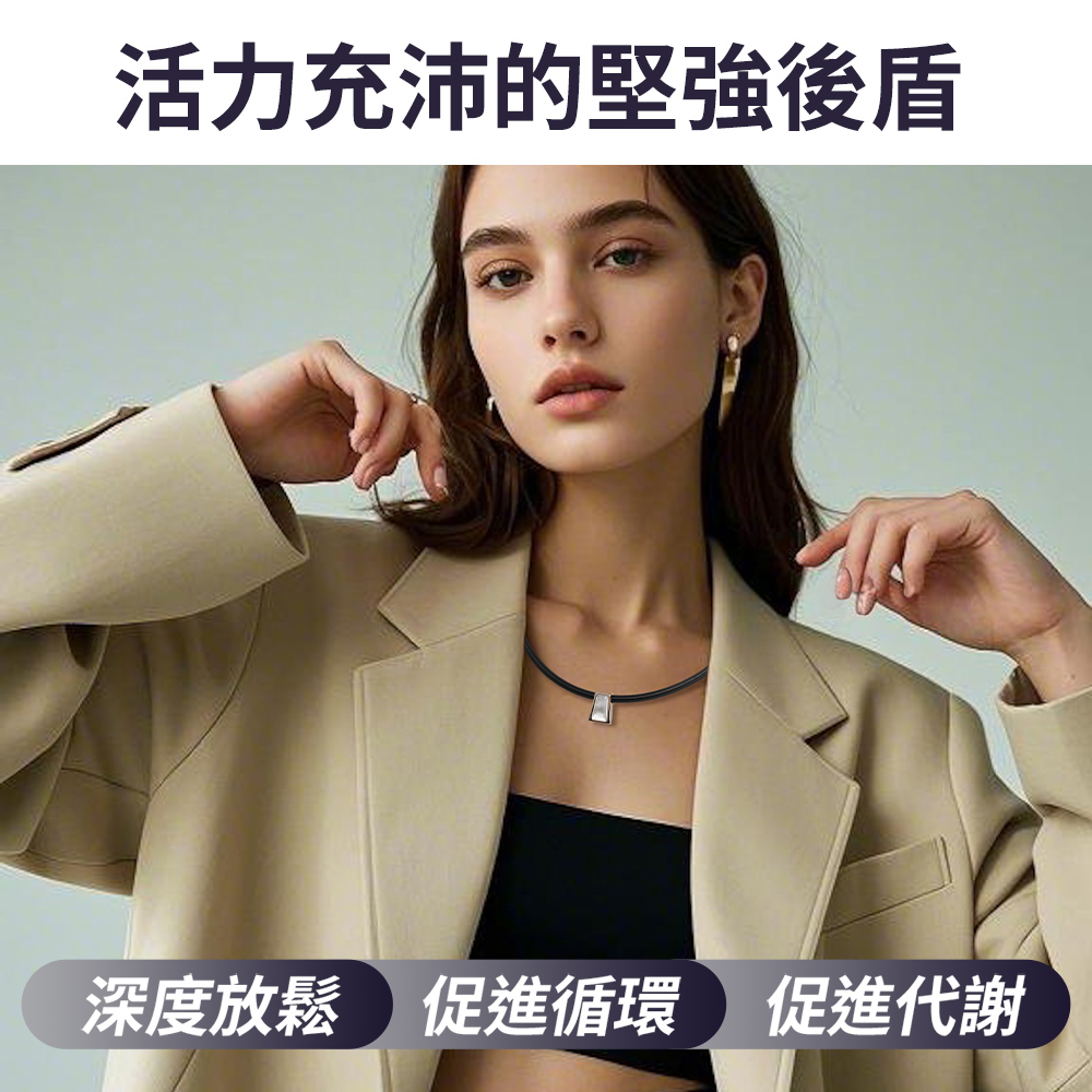 功能方面,項鍊採用專利製程鍊身,導入雙層能量結構與高效黃金三配方,穩定長效釋放百分之九十六遠紅外線,有效促進循環代謝、放鬆緊繃壓力,能量傳導更加深入快速。特別推薦給長期壓力或疲勞困擾者使用,佩戴之後能明顯紓壓放鬆。