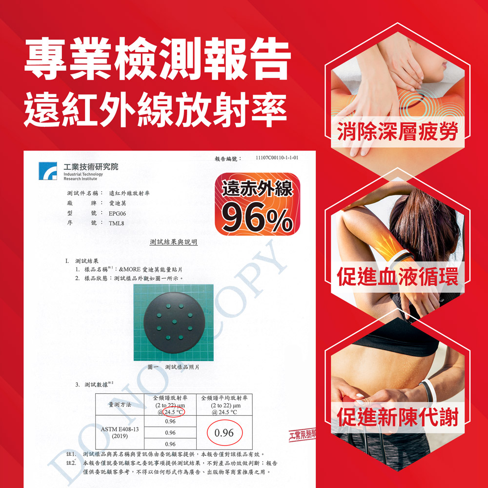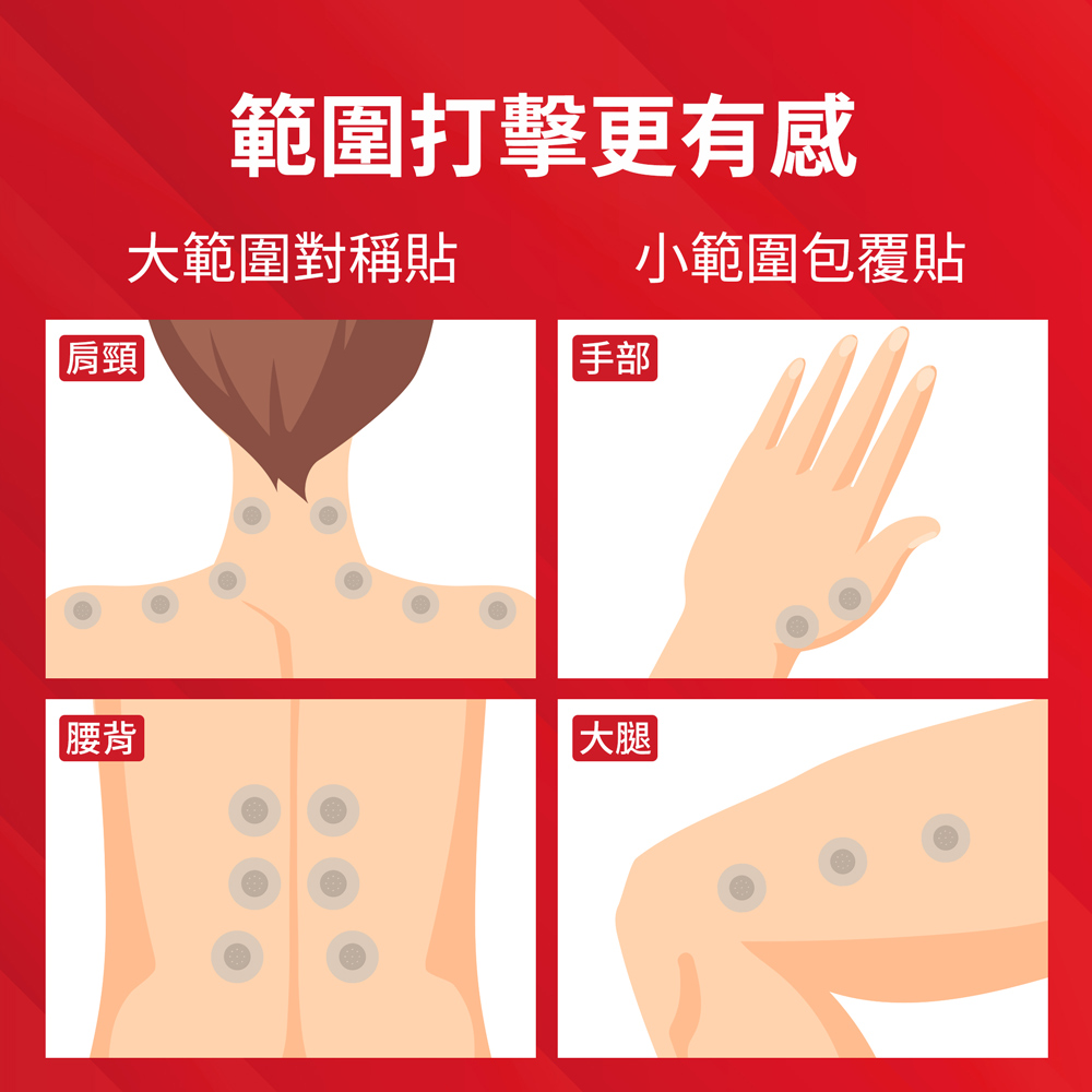 能量貼布尺寸:遠紅外線能量矽膠片-1.3 x 1.3cm、高彈力貼布-2.8 x 2.8cm