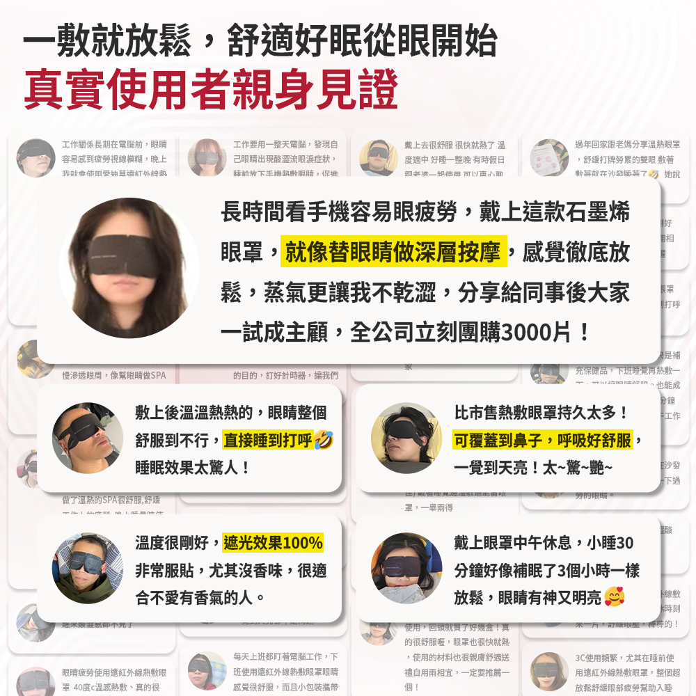 眼罩/足貼材質:石墨烯無紡布、彈性無紡布、活性碳粉、鐵粉、聚丙烯酸鈉、氯化鈉、蛭石、水