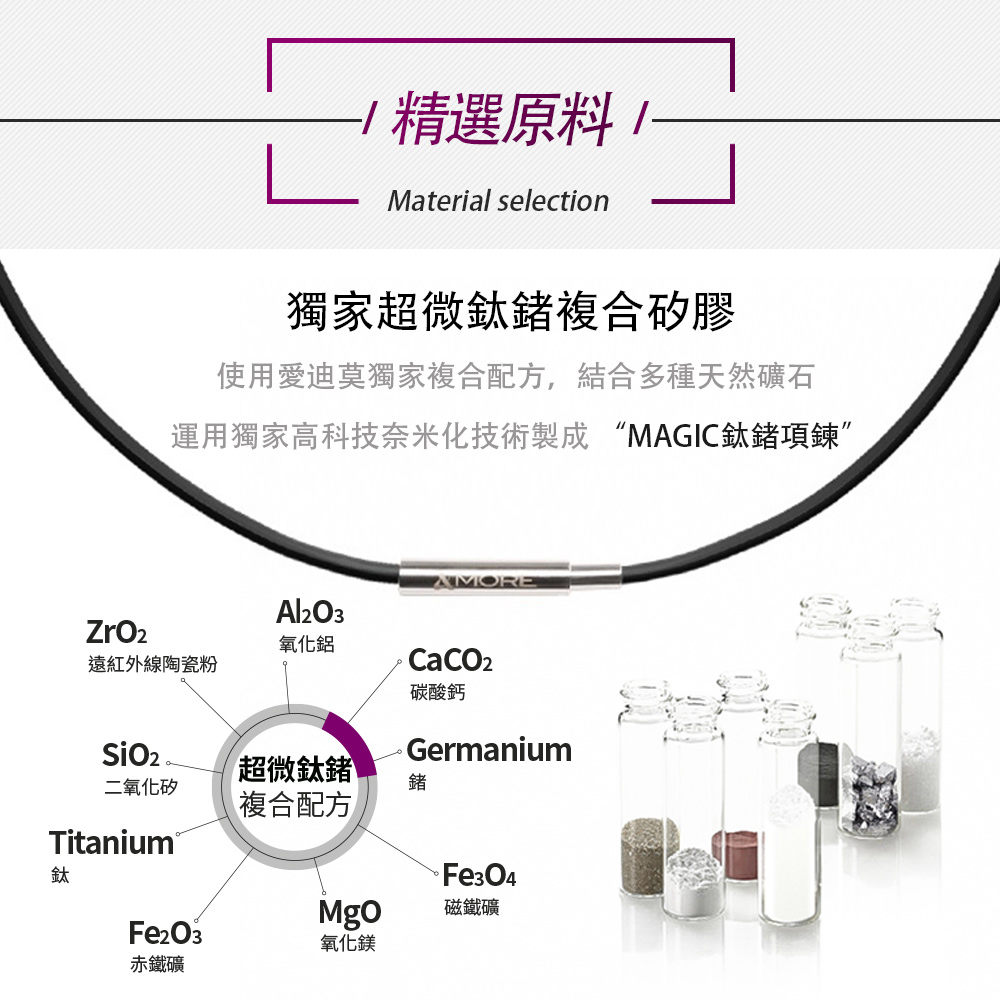 項鍊材質:鈦、鍺、遠紅外線、負離子...等能量原料、德制316L精鋼、優質矽膠。