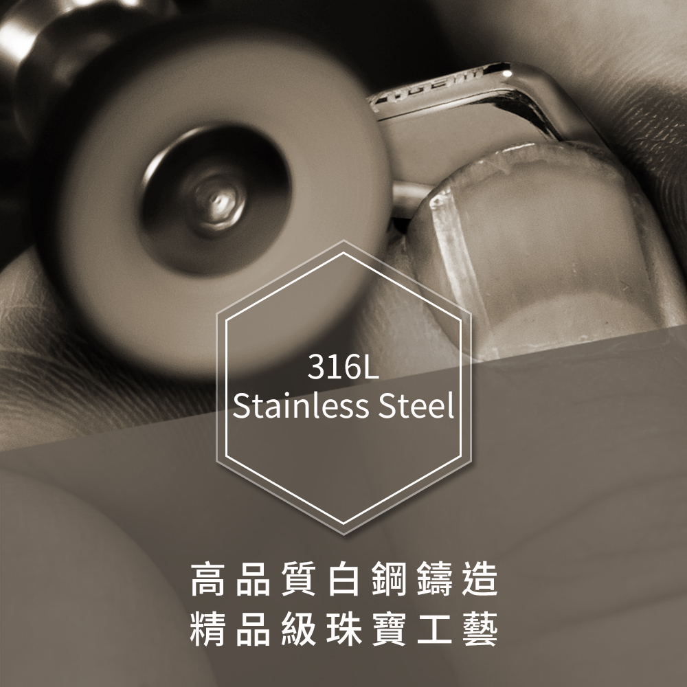 鍊身採用優質316L不鏽鋼打造,抗過敏、耐汗、防腐蝕,結合珠寶級拋光工藝,每一道曲線皆經反覆調整,修飾頸部與臉型線條,展現自然立體輪廓。