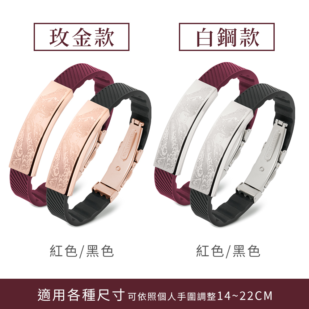加入上次未結帳之商品 × 大甲媽聯名 平安媽祖鈦鍺手環,結合機能性與設計感,鈦鍺保健康,媽祖佑平安,為配戴者帶來內外兼備的守護能量。商品提供白鋼款與玫金款兩種版本,各款皆搭配黑色與紅色鍊身,無論低調沉穩或熱情亮眼,皆能展現自我風格。